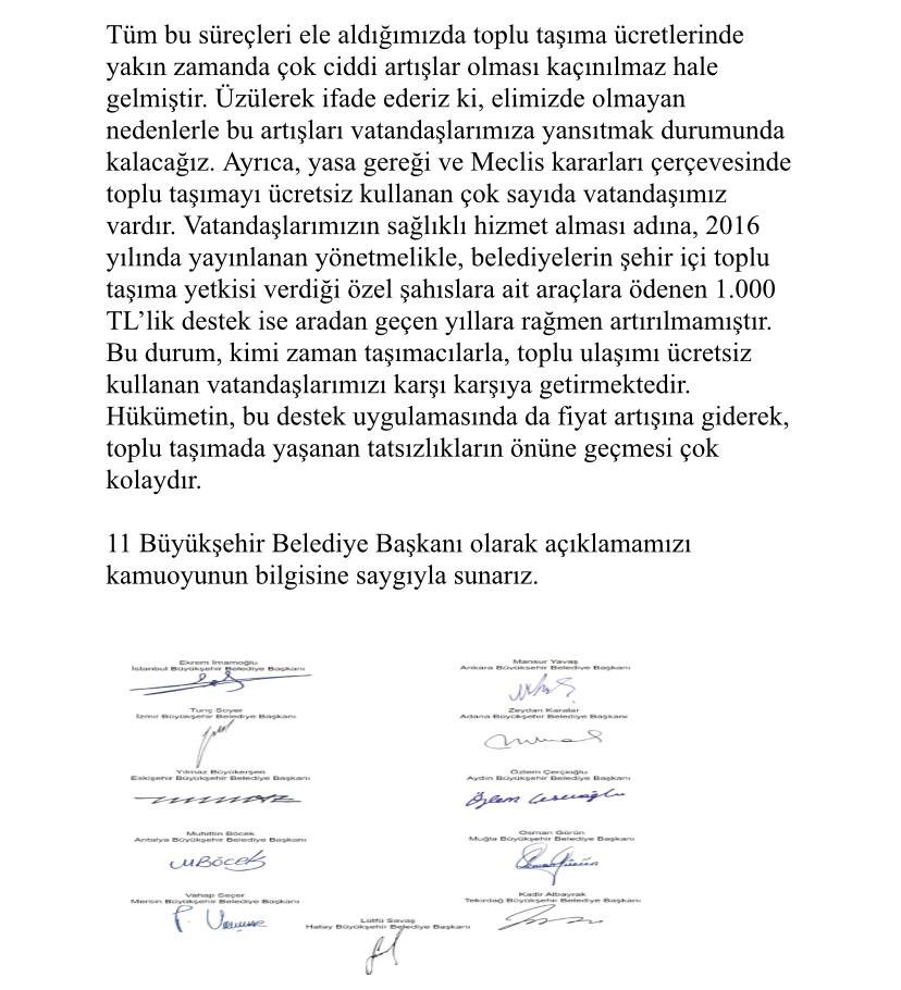 İzmir bölgesinde bulunan 11 belediye başkanı toplu ulaşım araçlarına yapılan zamlar ile ilgili ortak bir açıklama yaptılar..