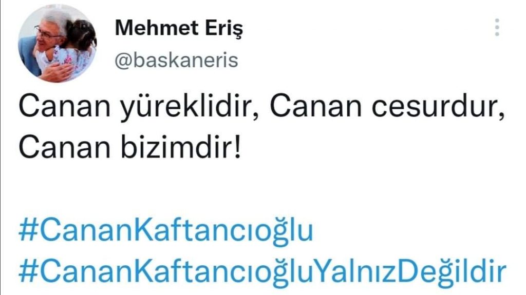 Ödemiş Belediye Başkanı Mehmet Eriş, CHP İstanbul İl Başkanı Canan Kaftancıoğlu’nun hapis cezasının ardından sosyal medya hesabından destek çıkan bir cümle paylaştı.