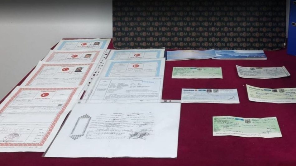 Yapılan aramalarda 5 adet çek, 4 adet tapu, 1 adet senet fotokopisi, 1 adet ihbarname ile çok sayıda satış sözleşmesi ele geçirildi.