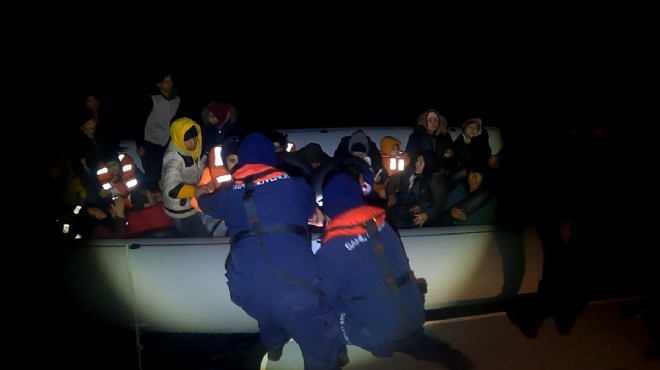 İzmir açıklarında 65 düzensiz göçmen yakalandı, motor arızası nedeniyle sürüklenen bottaki 30 düzensiz göçmen kurtarılarak karaya çıkarıldı.