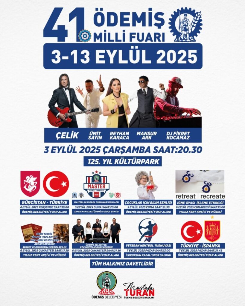 Fuarın ilk akşamı Ödemiş’te 90’ların unutulmaz şarkıcılarının yer aldığı konser düzenlenecek. 125. Yıl Külrpark’ta saat 20:30’da  yapılacak konserde; Çelik, Reyhan Karaca, Ümit Sayın, Mansur Ark ve Dj Fikret Kocamaz yer alacak.